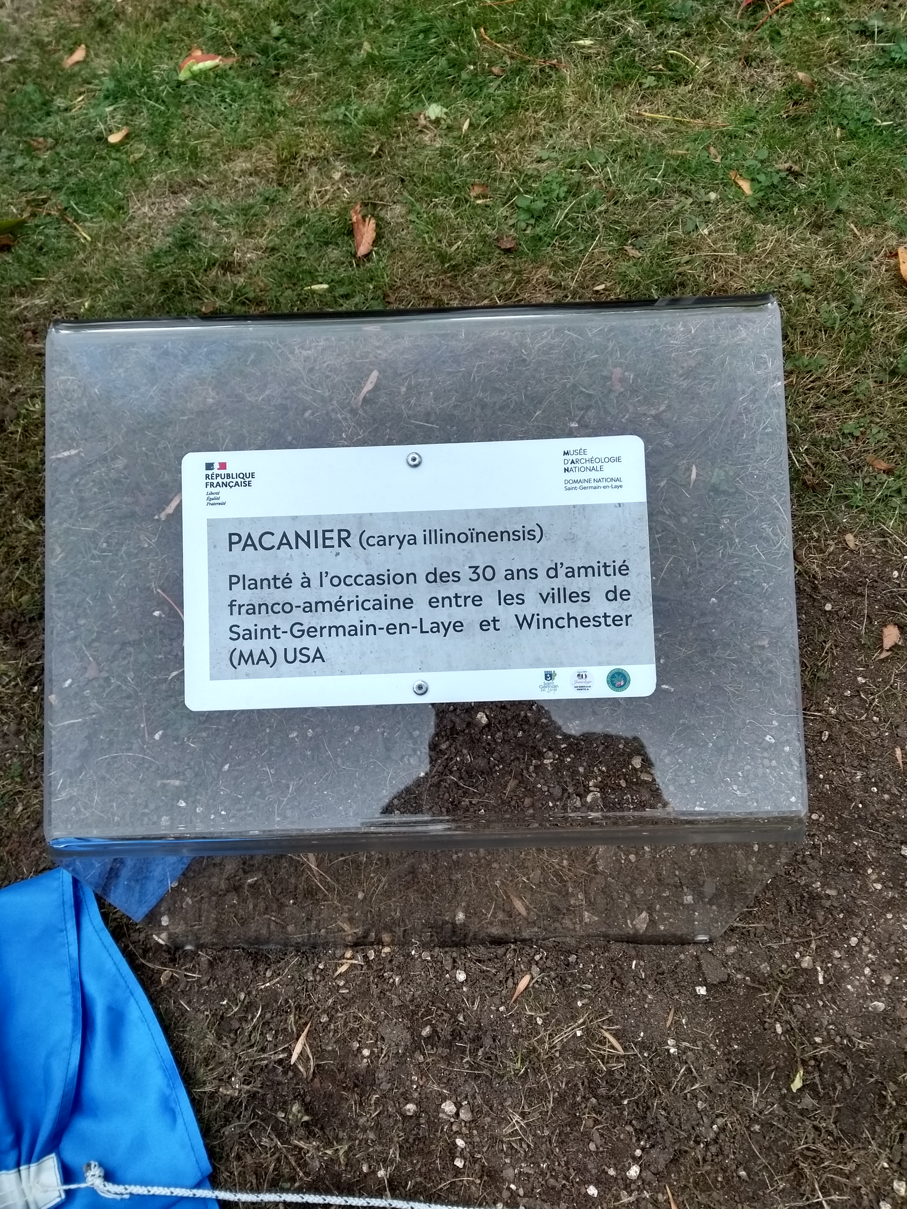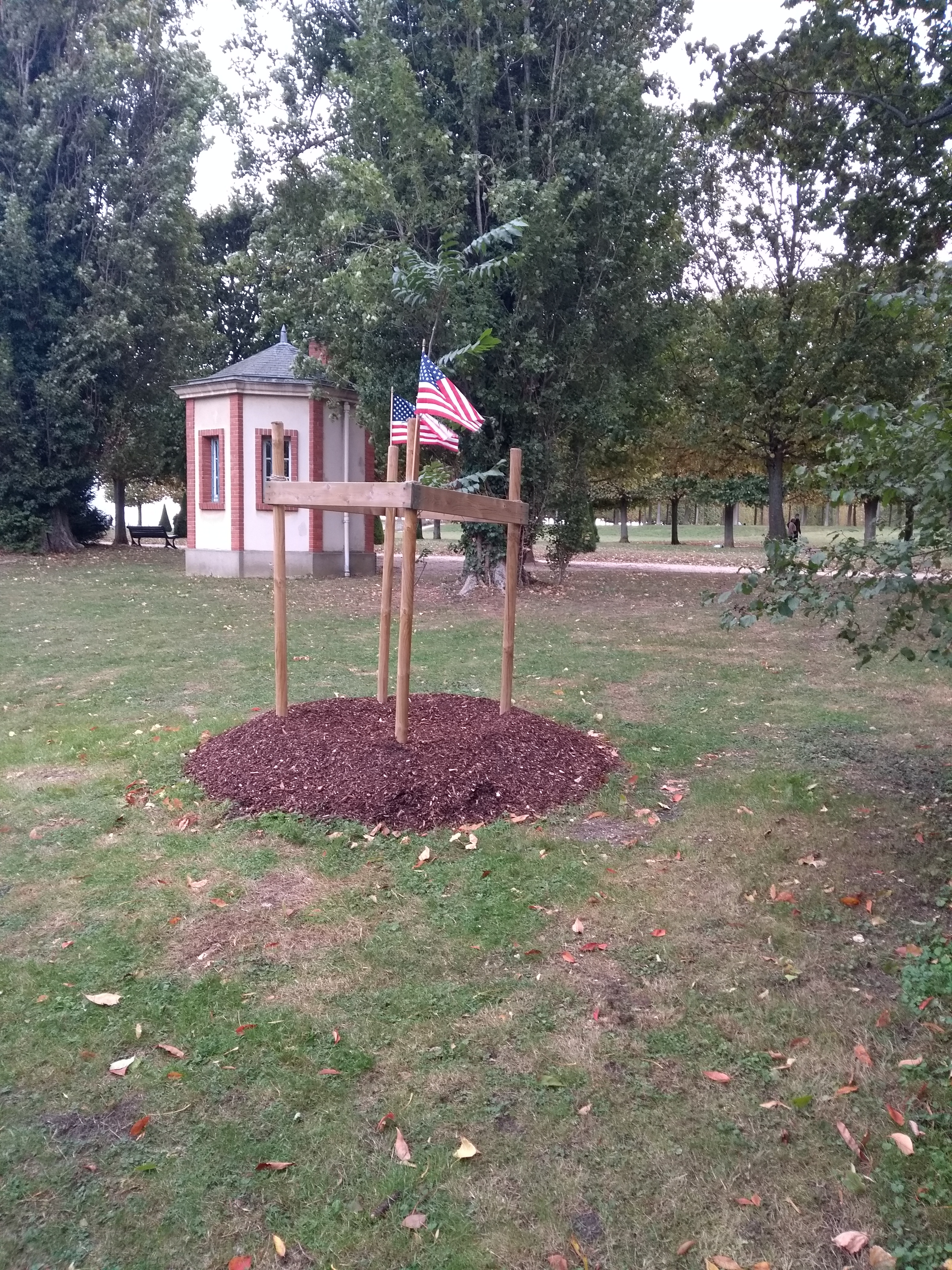 La plantation a eu lieu en 2019 dans une saison propice au jeune arbre, mais la cérémonie de plantation a eu lieu le samedi 26 septembre 2020 en présence du maire, de l’association de jumelage Saint-Germain Winchester Massachusetts, d’une chorale d’enfants, et d’une centaine de spectateurs.